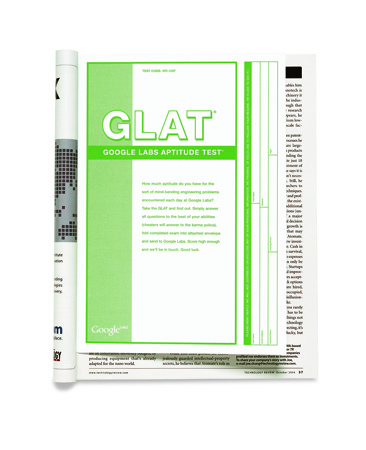 Produced Google magazine insert as a “standardized test” design printed inline with built-in pre-addressed envelope that enabled the test taker to mail.